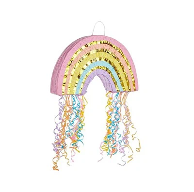 Diese regenbogenförmige Pinata zeigt schillernde Wolken an jedem Ende eines pastellfarbenen Regenbogens. Füllen Sie diese fröhliche Pinata mit Partygeschenken und Süßigkeiten und die Gäste können abwechselnd die Leckereien freigeben!